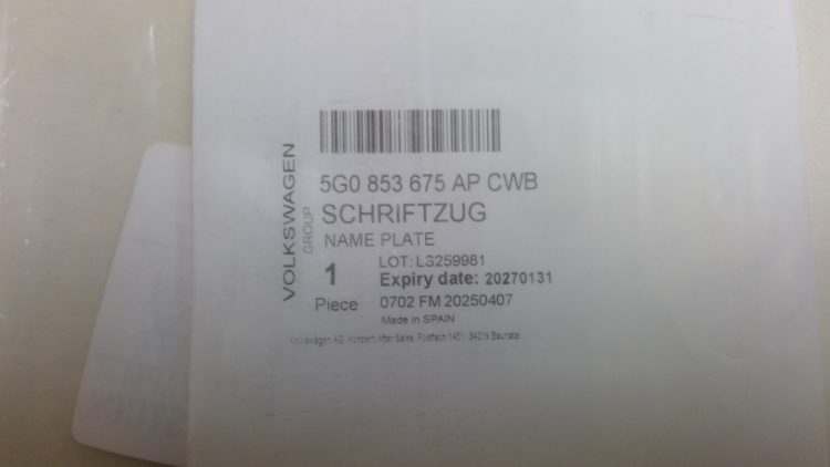 Pièce d'origine constructeur pour Volkswagen CADDY IV. Emblème « bluemotion » avec la référence (5G0 853 675 AP CWB).