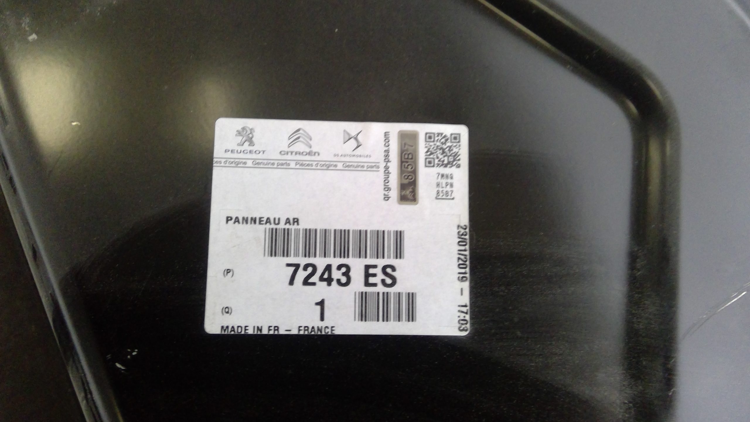 Panneau arrière d'origine constructeur pour Citroën C3 II (référence 7243ES). Pièce complète.