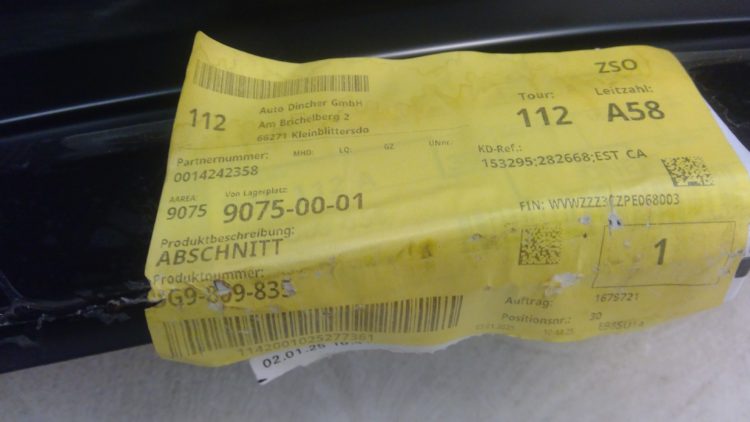 Pied milieu supérieur gauche pour Volkswagen PASSAT VIII, pièce d'origine constructeur (référence 3G9 809 835). Compatible uniquement avec la carrosserie break. Section inférieure et avant prélevée.