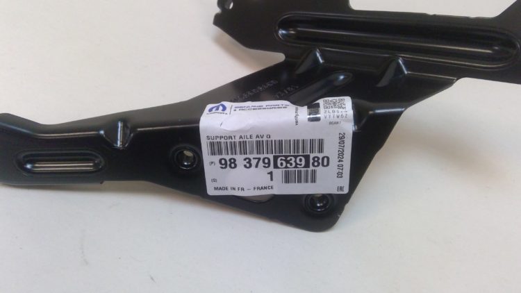 Pièce d'origine constructeur (référence 98 379 639 80). Support aile avant gauche pour Peugeot 3008 II (P84E) et 5008 II (P87E).